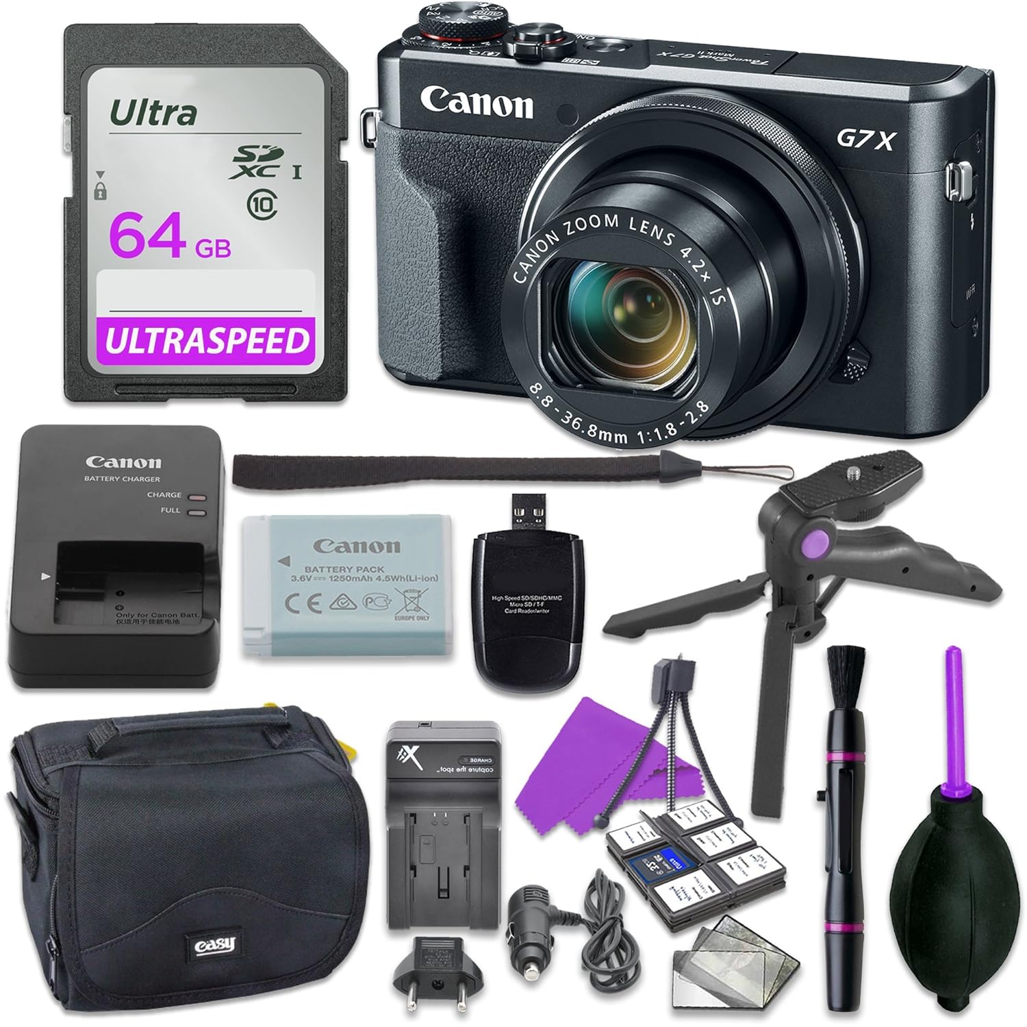 Canon Powershot G7 X Mark II Point & Shoot Digital Camera Bundle w/ Tripod Hand Grip , 64GB SD Memory , Case and More